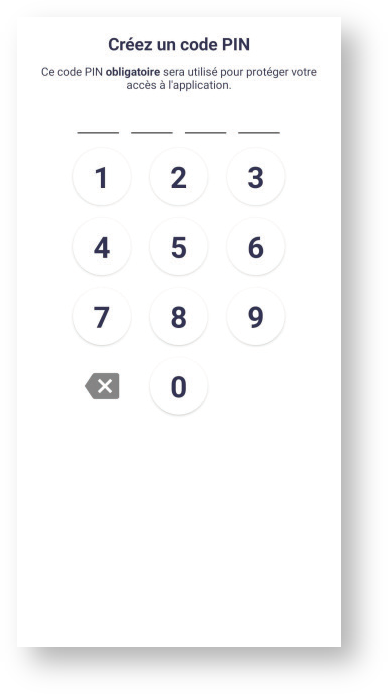 Sur l’écran de connexion, saisissez votre identifiant et votre mot de passe. À la première connexion, la création d’un code PIN est requise pour sécuriser votre accès. À la suite de cela, vous pourrez activer la saisie par empreinte digitale ou reconnaissance faciale.