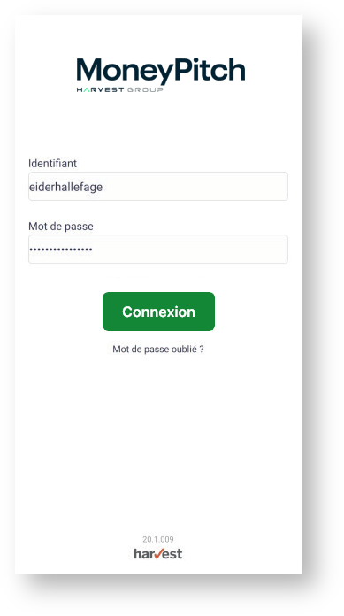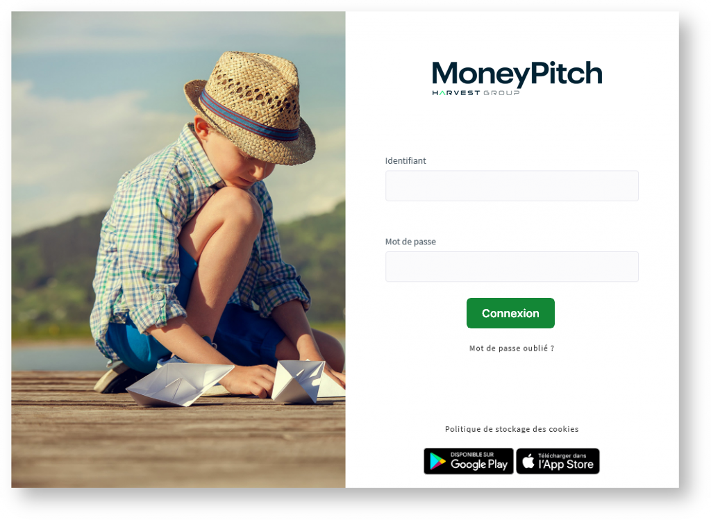 Si vous accédez à MoneyPitch via l’application autonome (avec le lien moneypitch.fr ou par l’application MoneyPitch sur smartphone), vous devez disposer d’un identifiant et d’un mot de passe pour ouvrir l’application.